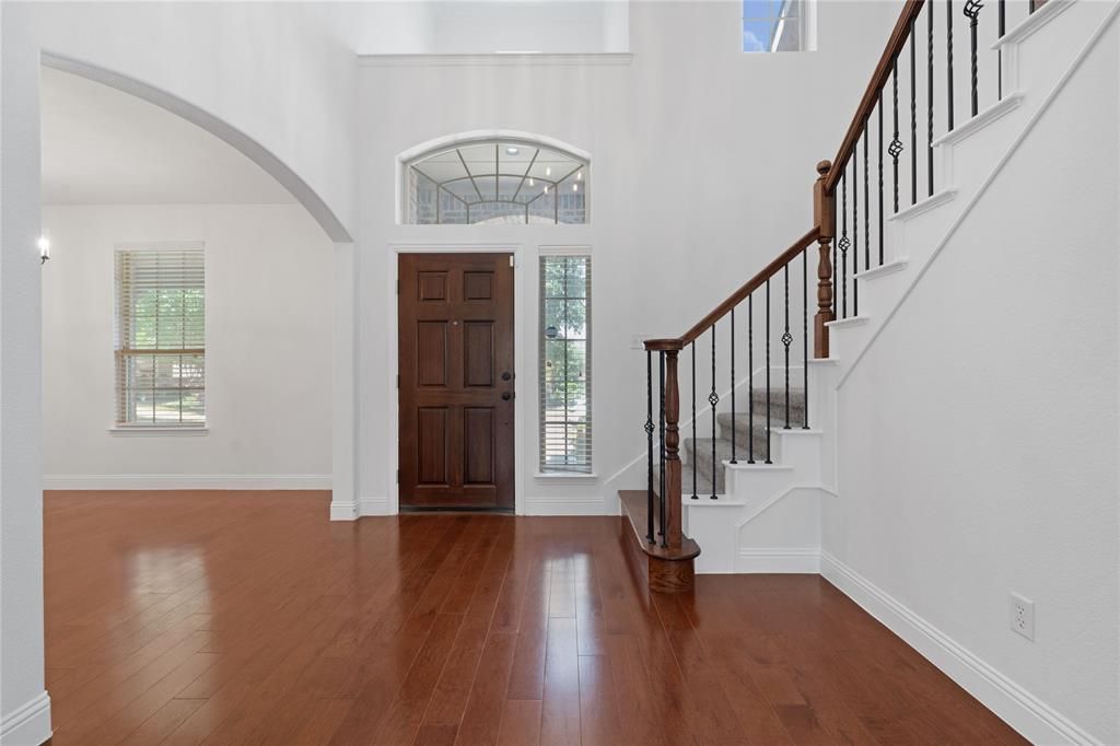 Welcome to this beautifully updated home in Frisco, zoned to highly sought-after Prosper ISD. Perfectly positioned on a corner lot directly across from one of the community pools, this home offers both convenience and standout curb appeal!Designed with flexibility in mind, this spacious five-bedroom layout is ideal for growing or multigenerational households, featuring two bedrooms on the first floor. Freshly painted with new carpet, the home also boasts hardwood flooring in the main living area and soaring ceilings that enhance the open, airy feel throughout. The owner’s suite is a private retreat with dual vanities, dual closets, and a separate soaking tub and shower. The large kitchen has been recently refreshed with a stylish new backsplash and opens seamlessly to the living spaces. A formal dining room offers versatility as an additional lounge, office, or flex space. Upstairs, enjoy a generous game room and an impressive media room complete with projector, surround sound, and custom cabinetry—perfect for entertaining or movie nights at home.Step outside to a covered patio with an extended concrete slab, creating an ideal space for outdoor living and gatherings. Located just minutes from shopping, dining, and major attractions including the PGA Frisco, University of North Texas at Frisco, and the highly anticipated Universal Kids Resort, this home truly offers the best of location and lifestyle. With a strong owner-occupancy rate and rental restrictions that help maintain community integrity, this is an exceptional opportunity in one of Frisco’s most desirable areas.