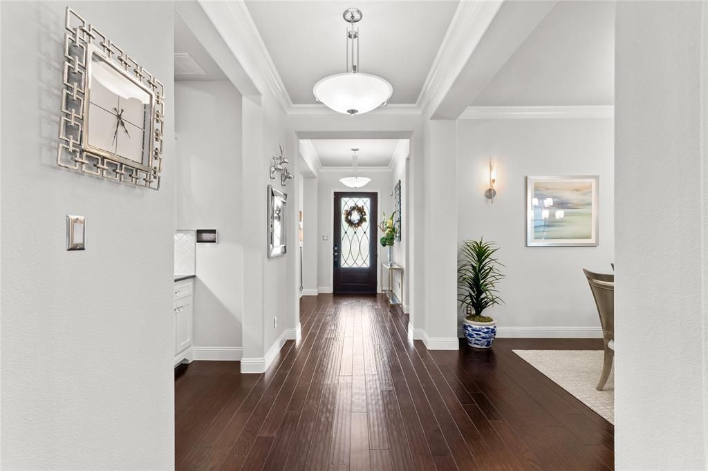 Immaculate and move-in ready, this 2020-built Drees home offers refined single-story living in the highly desirable Viridian community, along with a rare opportunity to assume a 2.25% interest rate loan.Thoughtfully designed with a bright, open-concept layout, the home features a spacious chef’s kitchen with a six-burner gas cooktop, large island, upgraded cabinetry, and walk-in pantry, all flowing seamlessly into the main living and dining areas. Rich wood floors and abundant natural light create a warm, inviting feel throughout.The primary suite is a true retreat, highlighted by vaulted ceilings and a spa-inspired bath with dual vanities, a soaking tub framed by windows, an oversized walk-in shower, and a generous walk-in closet. Two secondary bedrooms each offer ensuite baths and walk-in closets, while a flexible den can convert to a study or fourth bedroom. A butler’s pantry with wine cooler and dry bar, along with a built-in pocket office, add both function and convenience.The outdoor space is designed for everyday enjoyment, featuring a covered patio, turfed putting green, and a grassy side yard. A three-car garage configuration, including a separate single bay with overhead storage, provides ample flexibility.Residents of Viridian enjoy access to resort-style amenities including the Lake Club, Sailing Center, pools, tennis and volleyball courts, scenic trails, parks, and an on-site elementary school, plus close proximity to shopping, dining, and major highways.