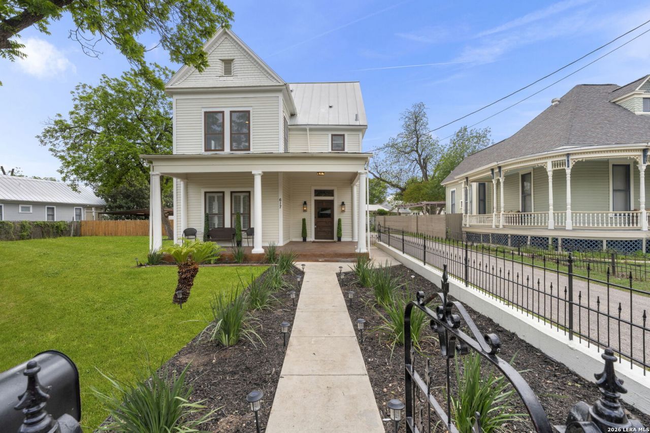 Set in the heart of King William, one of San Antonios most iconic and walkable neighborhoods, 617 E Guenther Street offers a rare combination of historic presence, modern updates, and space thats hard to come by. Positioned on a double lot, this 1915 Victorian stands out not just for its architecture, but for how it lives today. Inside, the home feels open and inviting, with tall ceilings, natural light, and multiple living areas that give you flexibility whether youre hosting or just enjoying a quiet evening. The kitchen is built for both function and flow, featuring a large island, custom cabinetry, and quartz surfaces, all opening into a generous dining space. Throughout the home, youll notice details that matter-refinished wood floors, original stained glass, plantation shutters, and three fireplaces that add depth and character without sacrificing comfort. Upstairs, the bedrooms are larger than expected for a home of this era, offering room to spread out while still maintaining the homes historic feel. Out front, the porch becomes an extension of your living space, especially in the evenings with views of the Tower of the Americas lighting up the skyline. The property itself is what truly sets this home apart. The expansive backyard, 4-car covered parking, and a detached 1,260 sq. ft. finished apartment with its own private entrance open the door to countless possibilities-guest quarters, rental income, or a private studio. All of this just steps away from Southtown, the River Walk, top restaurants, parks, and galleries-placing you right in the middle of everything that makes this area so special. Homes with this combination of location, lot size, and flexibility dont come around often in King William.