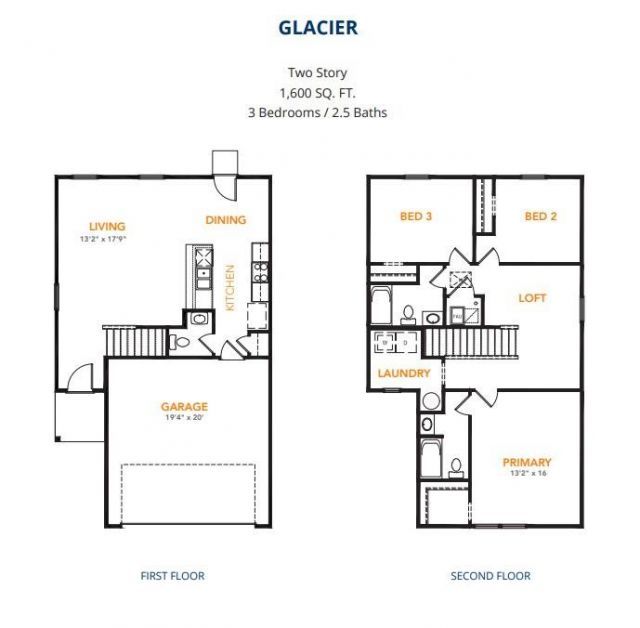 MLS# 21249017 - Built by NHC - Ready Now! ~ Model 1600-2 A1 - Glacier The Glacier Plan from our Freedom Series is a thoughtfully designed 2-story home offering 3 bedrooms, 2.5 bathrooms, and 1,600 square feet of living space, complete with a 2-car garage. As you step inside, you’ll pass the staircase to the upper level before arriving at the bright and open family room. This inviting space flows seamlessly into the kitchen and dining area, creating the perfect setting for family time or entertainment. A convenient half bathroom is located just off the kitchen for easy access. The upper level is designed for relaxation and privacy, featuring a spacious primary suite with a walk-in closet and a private bathroom. Two secondary bedrooms, a full bathroom, and a laundry room complete this level. A large loft provides additional living space, ideal for a playroom, media area, or home office.